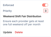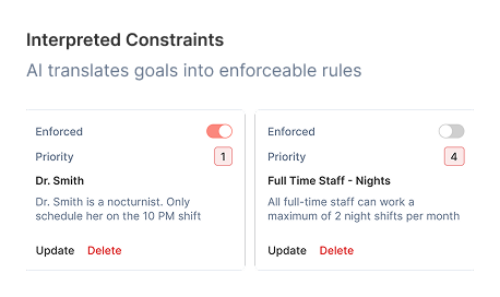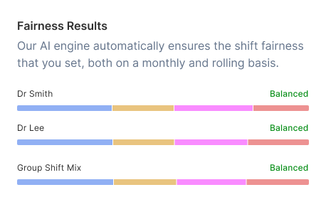 No side-spreadsheets needed. Our AI automatically understands and enforces the shift-target and fairness parameters that administrators and schedulers set